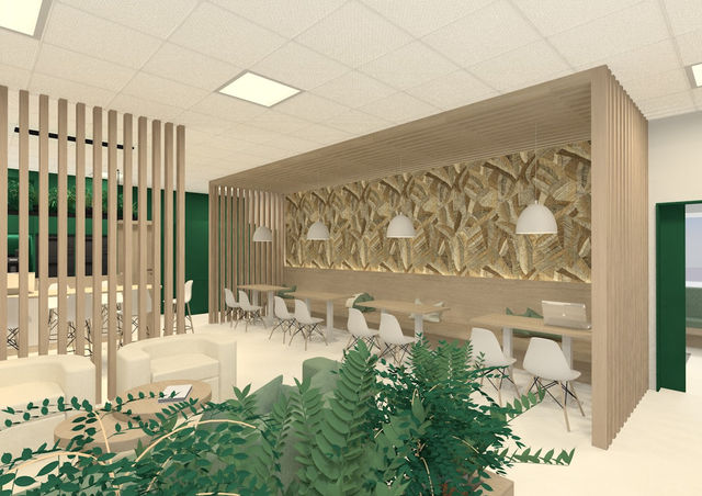Das Architekturbüro Scharf wurde mit der Gestaltung eines Aufenthalts- und Pausenraums in bestehenden Räumlichkeiten beauftragt.